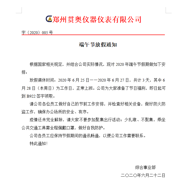 2020端午佳節(jié)將至,首先向鄭州貫奧儀器儀表有限公司全體員工及家人致以節(jié)日誠摯的問候。