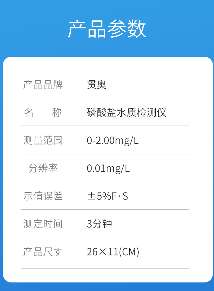 磷酸鹽水質檢測儀器參數配置: